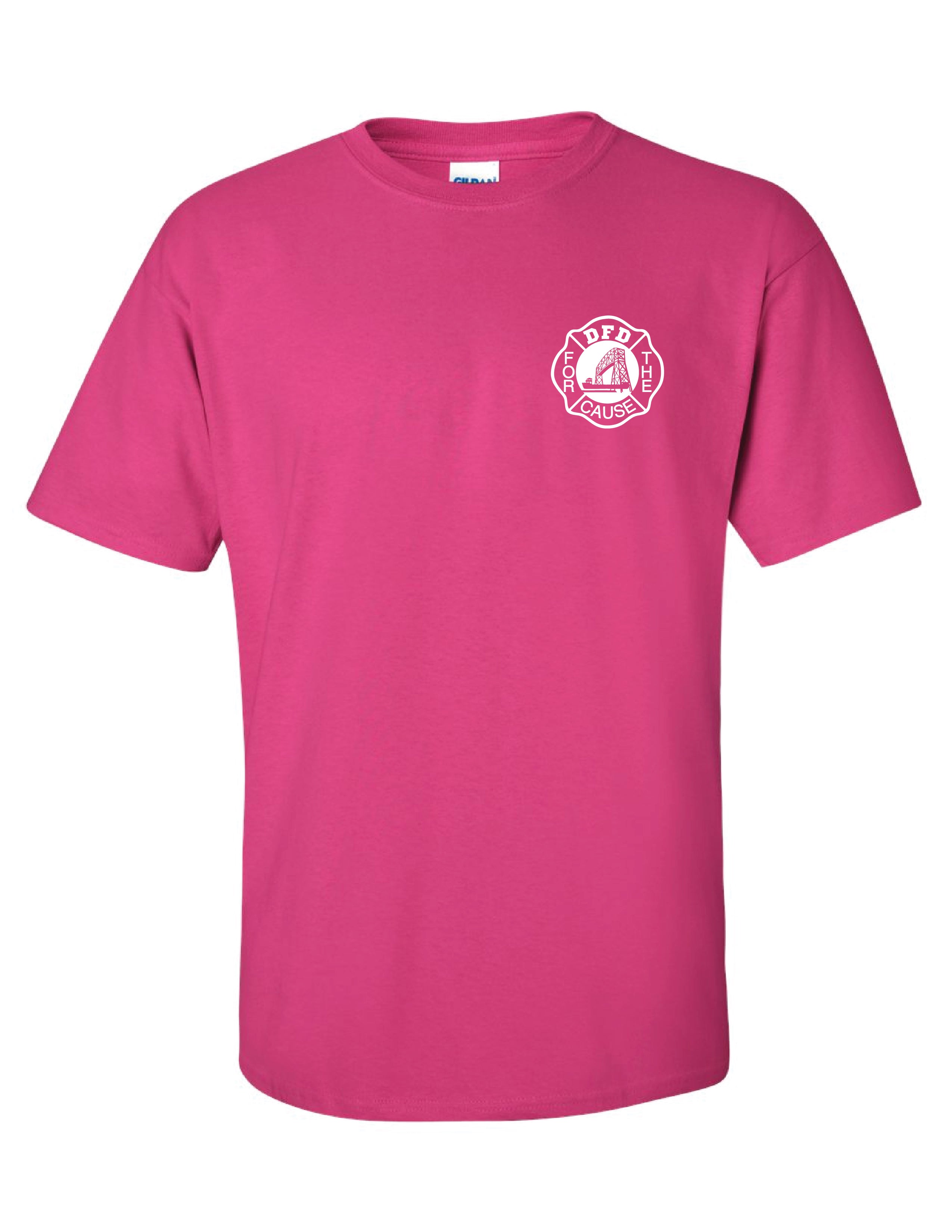 The Gildan dark pink shirt is available until current stock is depleted. We will not be reprinting this color this year and we have taken a price reduction on this style/color. The Gildan style shirts will be available for same day pick up.