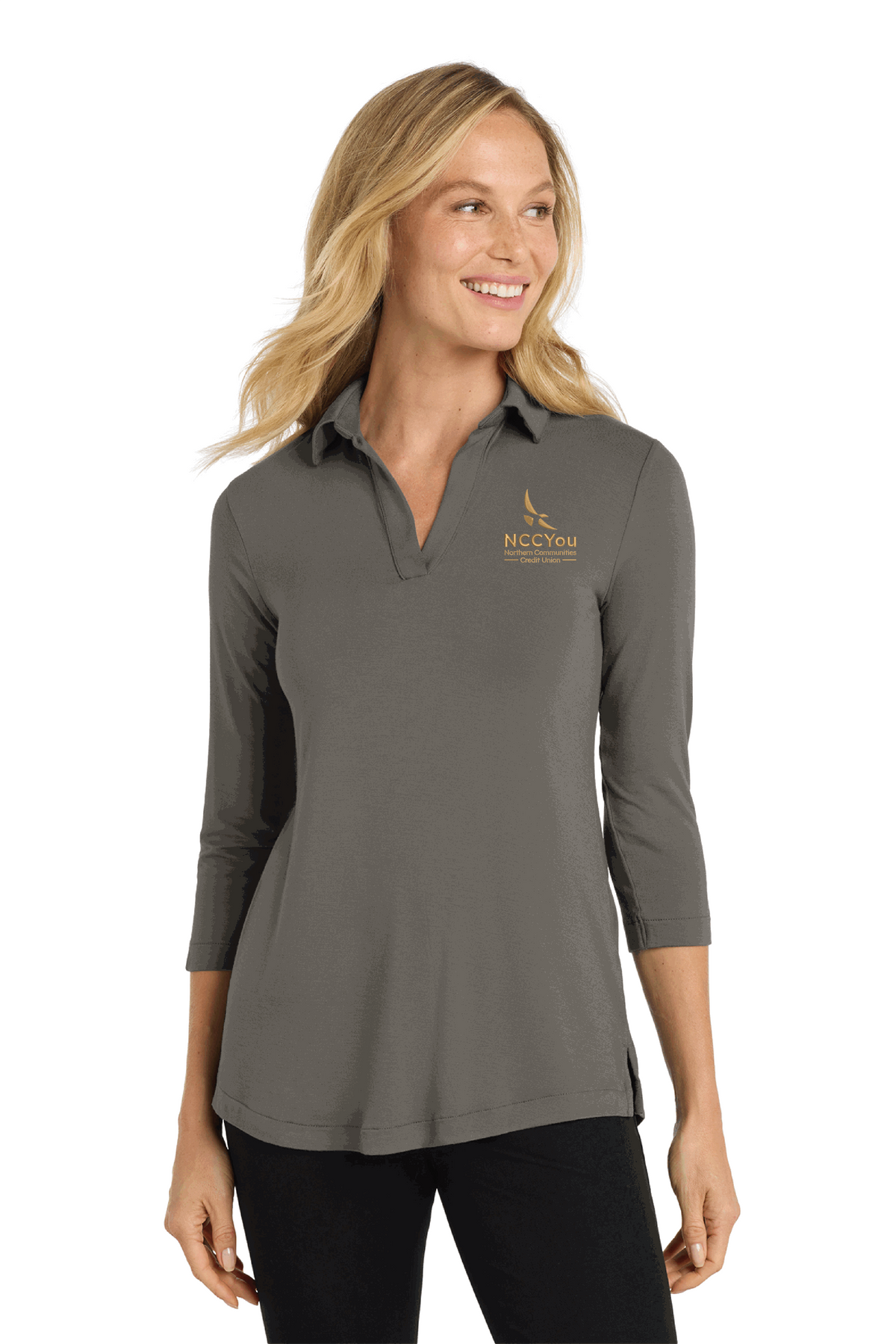 The updated look of this polo-inspired tunic has a longer length to keep you covered while still looking polished. The stretch in the machine-washable fabric ensures you feel comfortable.